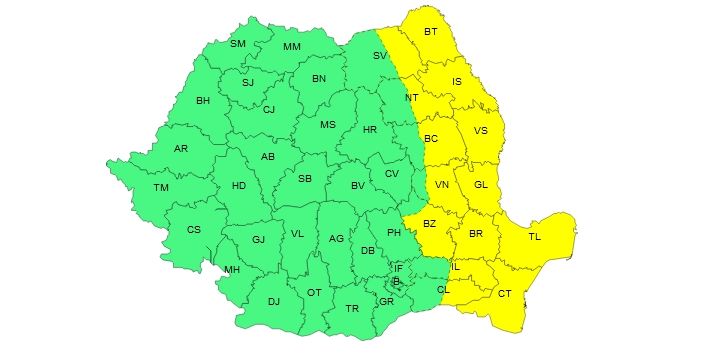 Astăzi, vremea se va răci, local semnificativ în sudul, estul și parțial în centrul țării, unde cerul va avea înnorări. Începând de sâmbătă, de la ora 6:00, a intrat în vigoare un cod galben de vânt valabil în 14 județe din sudul şi sud-estul țării. Această avertizare meteorologică, alături de o informare de ploi este valabilă în intervalul 12 octombrie, ora 06 – 12 octombrie, ora 21. Potrivit ANM, pe parcursul zilei de sâmbătă, în Moldova, estul și nord-estul Munteniei precum și în Dobrogea.